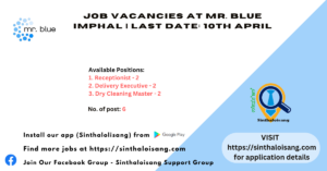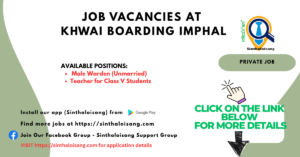 Read MoreWelcome to Sinthaloisang.com, your go-to Manipur job search platform. Discover a wide range of job vacancies in Manipur and explore exciting career opportunities tailored to your skills. Whether you’re looking for full-time positions, part-time roles, or internships, our Manipur job portal connects you with top employers in the region. Start your journey today and find the perfect job with Sinthaloisang Manipur jobs. Read more