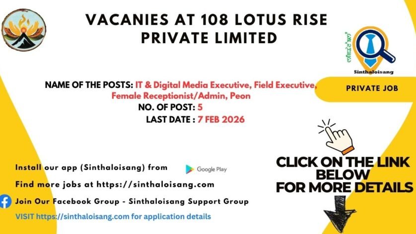 108 Lotus Rise Private Limited invites applications from eligible and interested candidates for engagement in the following positions: