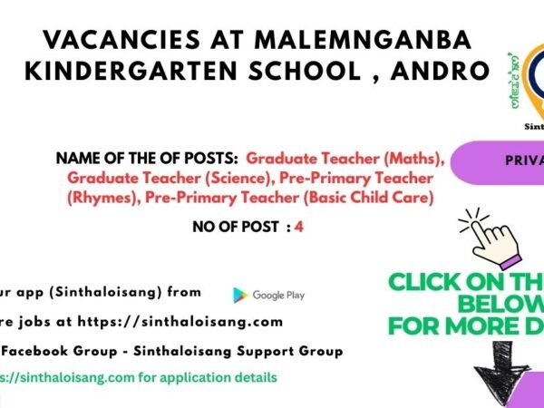Malemnganba Kindergarten School, Andro invites applications from eligible and dedicated candidates for the following teaching positions for the academic session 2025–2026. Vacancy Details Name of …