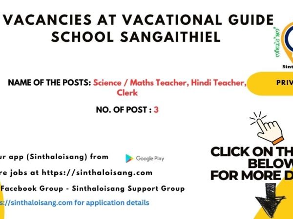 Vocational Guide School, Sangaithiel, Imphal West are invited from interested and eligible candidates for the following vacant posts: Vacancy Details Name of the Post: Science …
