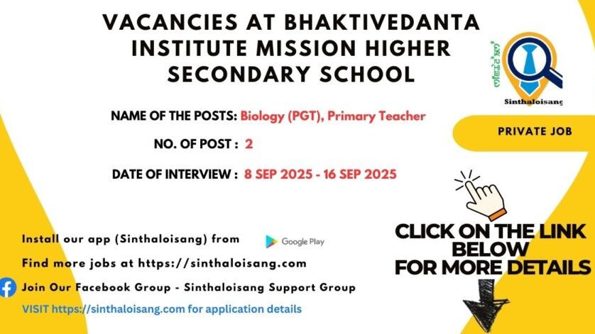 Bhaktivedanta Institute Mission Higher Secondary School invites applications to the well discipline and dedicated candidates for the following post