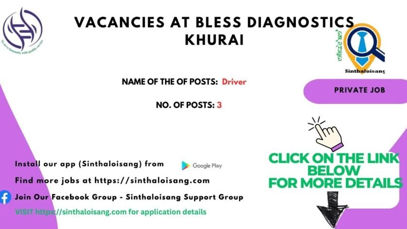 The bless diagnostics invites applications from qualified and enthusiastic candidates for the following post: