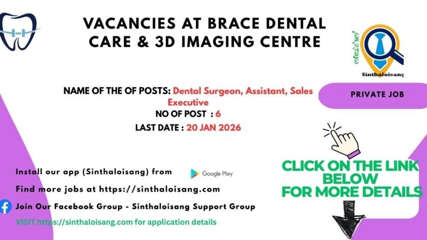 Braces Dental Care & 3D Imaging Centre invites applications from eligible candidates for the following posts: