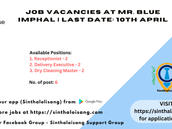 Mr. Blue, a growing and professional service provider in Wangkhei, Imphal, is looking for dedicated and motivated individuals to join its dynamic team. If you …