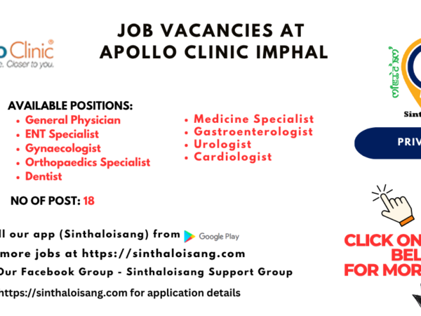 Apollo Clinic, Malom Tuliyama Awang Leikai, Imphal West, is inviting applications from qualified and experienced medical professionals for the following positions: Vacancies Details Available Positions …