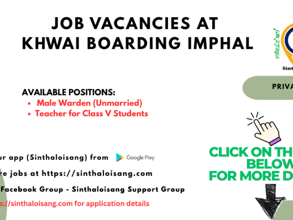 Khwai Boarding, located at Kwakeithel Heinoukhongnembi, Imphal (Near RM School), is inviting applications from eligible candidates for the following positions: Vacancies Details Available Positions Eligibility …