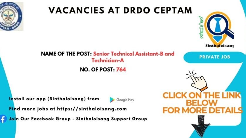 The Defence Research & Development Organisation (DRDO), Ministry of Defence, Government of India, through its Centre for Personnel Talent Management (CEPTAM), invites online applications from eligible candidates for the posts of Senior Technical Assistant-B and Technician-A