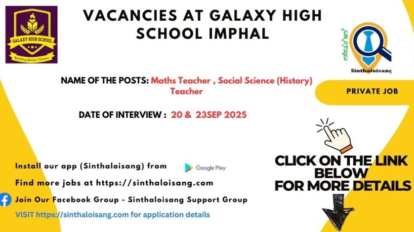VACANCIES AT GALAXY HIGH SCHOOL IMPHAL | DATE OF INTERVIEW- 20 & 23 SEP 25