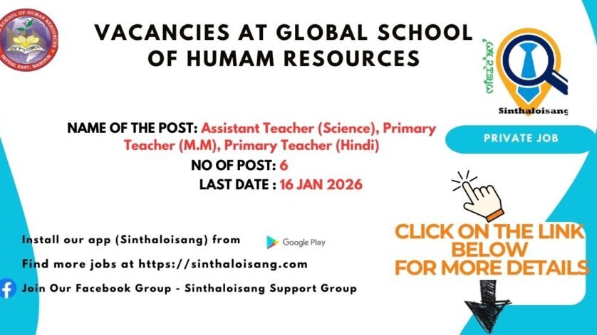 Interested candidates should submit their resume along with academic credentials and relevant documents at the school office on or before 16 January 2026, during office hours (10:00 AM – 2:00 PM).