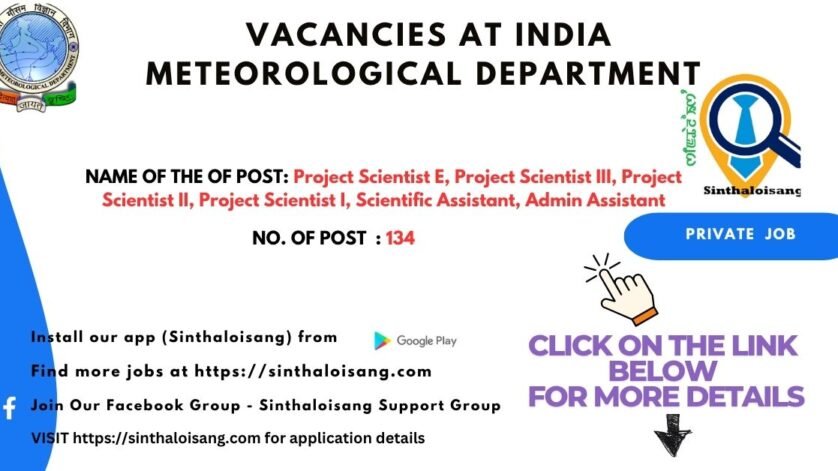 The India Meteorological Department (IMD) invites online applications from eligible Indian Nationals for filling up the following temporary posts on a contractual basis.