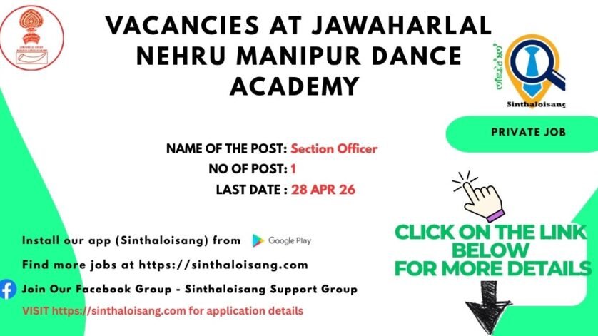 Jawaharlal Nehru Manipur Dance Academy (JNMDA), Imphal invites applications for the post of Section Officer on a deputation basis.