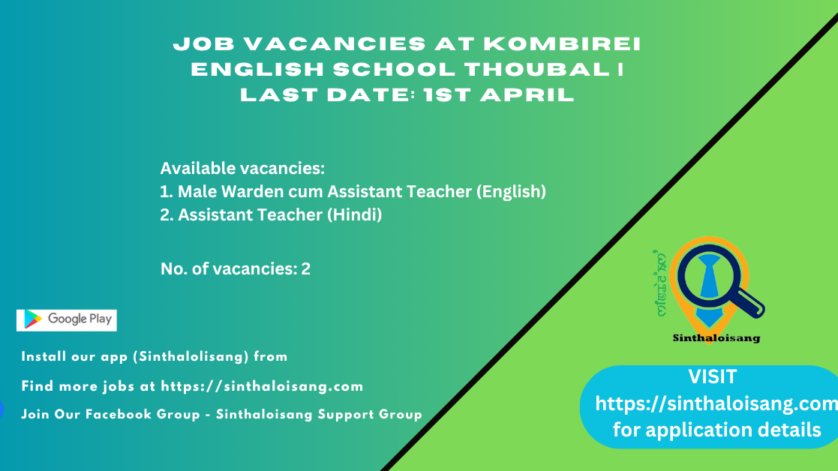 JOB VACANCIES AT KOMBIREI ENGLISH SCHOOL THOUBAL | LAST DATE: 1st APRIL