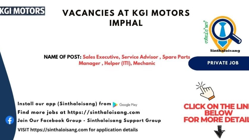 VACANCIES AT KGI MOTORS IMPHAL