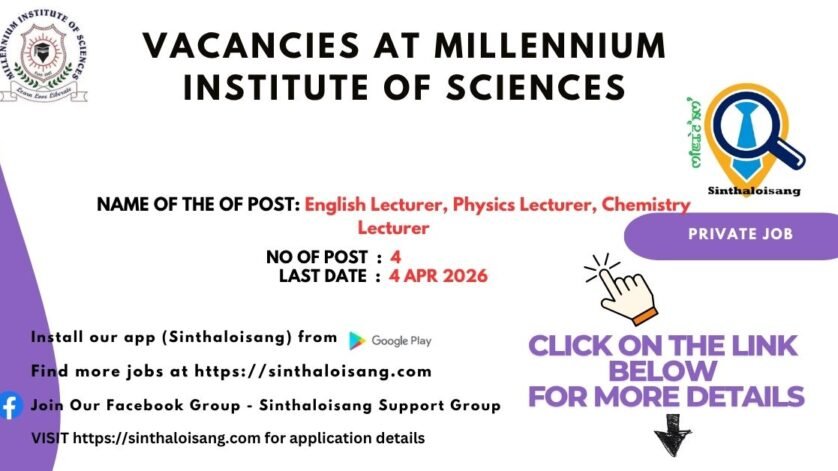 VACANCIES AT MILLENNIUM INSTITUTE OF SCIENCES | LAST DATE – 4 APR 26