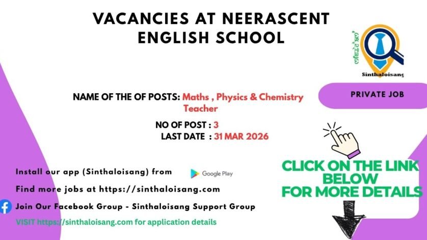 Neerascent English School is inviting those interesting candidates who are young, dynamic, and experienced teachers for the following subjects: