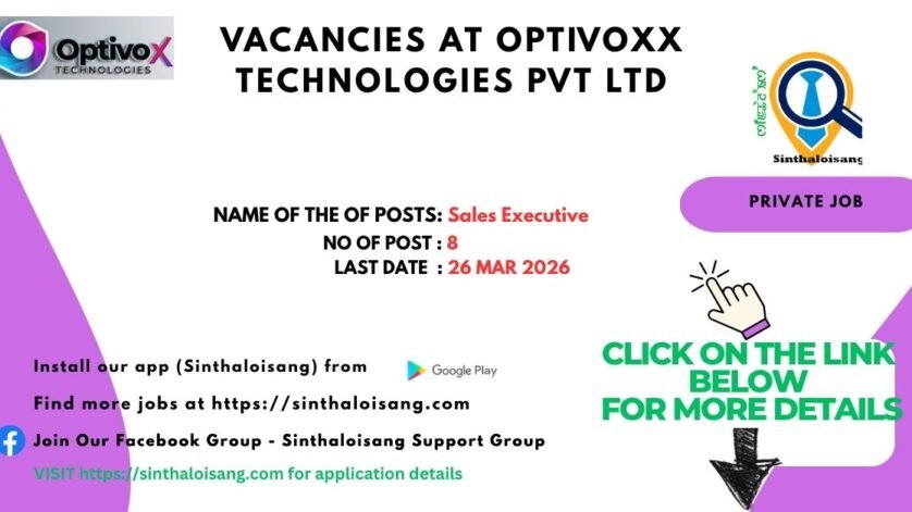 Optivoxx Technologies Pvt. Ltd. is inviting applications for the position of Sales Executive at its Khuyathong Branch. This is a great opportunity for freshers looking to start their career in sales with proper training and growth opportunities.