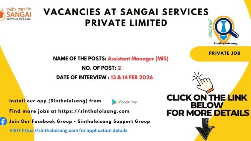 Sangai Services Private Limited invites eligible candidates to attend a walk-in interview for the post of Assistant Manager – Management Information System (MIS).