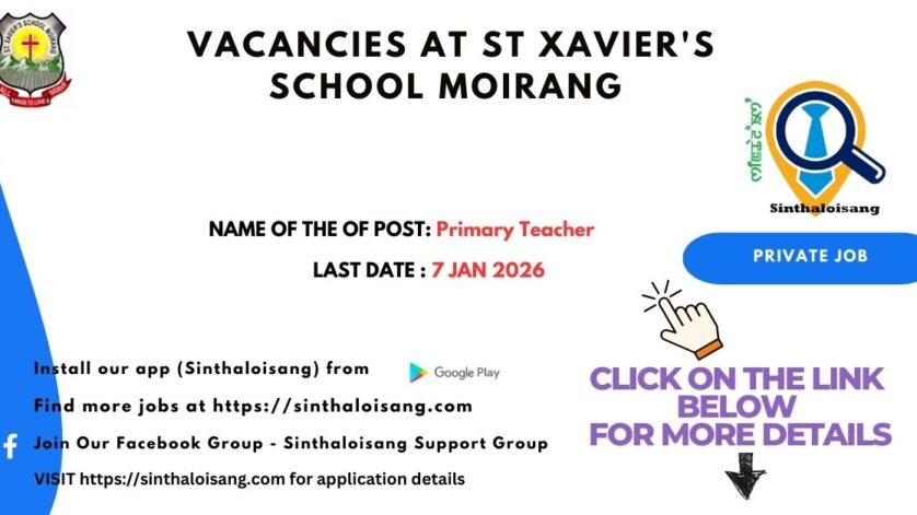 St. Xavier’s School, Moirang invites applications from qualified and dedicated candidates for the post of Primary Teacher.