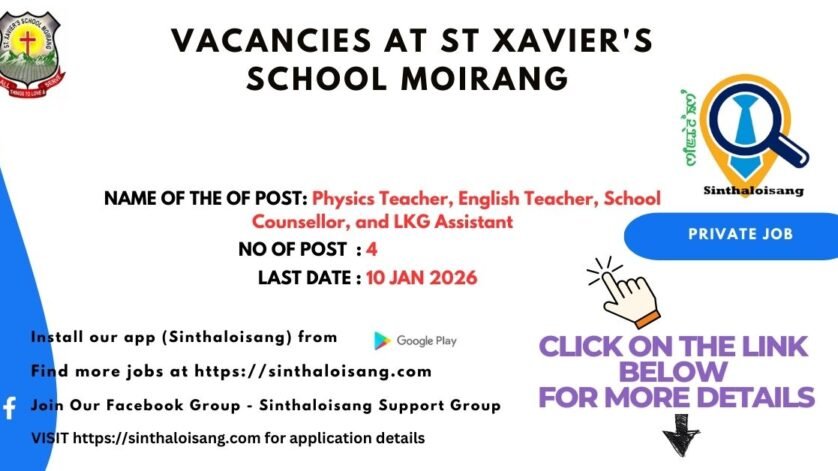 St. Xavier’s School, Moirang invites applications from eligible and qualified candidates for the following vacant posts: