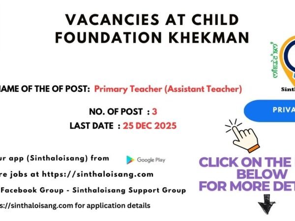 Premier English Academy, Kyamgei, Canchipur invites applications from qualified and dedicated candidates for the following teaching positions. Vacancy Details Name of the Post: Assistant Teacher …