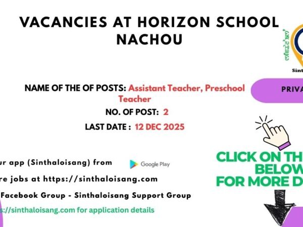 Horizon School, Nachou invites applications from eligible and qualified candidates for the following posts. Vacancy Details Name of the Post: Assistant Teacher No. of post …