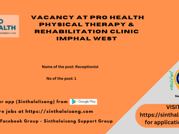 RECEPTIONIST VACANCY AT PRO HEALTH PHYSICAL THERAPY & REHABILITATION CLINIC IMPHAL WEST