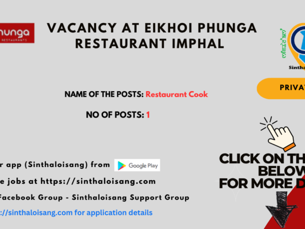 Eikhoi Phunga Restaurants is hiring skilled and passionate individuals for the position of Restaurant Cook. If you have experience in cooking and enjoy working in …
