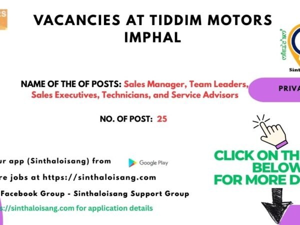 Join our team at Tiddim Motors and explore exciting career opportunities in the automobile sector! Vacancy Details Name of the Post: Sales Manager No. of …