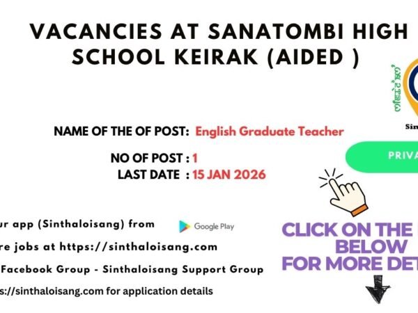 Sanatombi High School, Keirak (Aided), Kakching District invites applications from eligible and interested candidates for the following post: Vacancy Details Name of the Post: English …