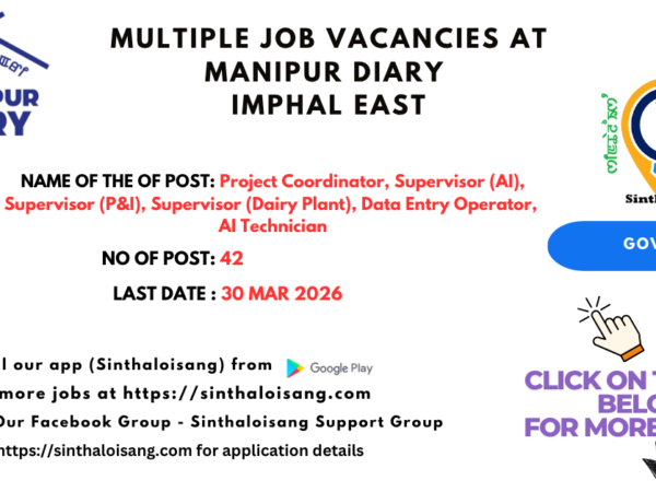 • MULTIPLE JOB VACANCIES AT MANIPUR DIARY IMPHAL EAST| LAST DATE 30 MAR 2026