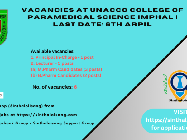 VACANCIES AT UNACCO COLLEGE OF PARAMEDICAL SCIENCE IMPHAL | LAST DATE: 6th ARPIL