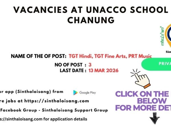 UNACCO School, Chanung, Sawombung Sub-Division, Imphal East, Manipur, invites applications from qualified and experienced candidates for the following Residential Teaching Positions. Vacancy Details Name of …