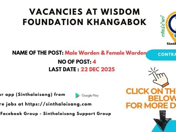 Wisdom Foundation, Khangabok, invites applications from eligible and dedicated candidates for the post of Male & Female Wardens to join our residential school community. Vacancy …