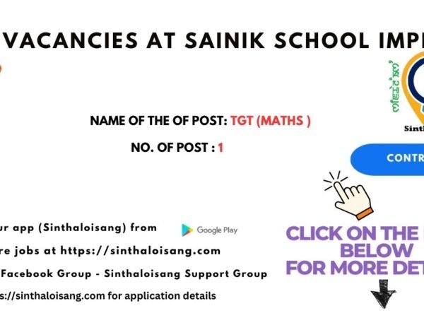 Sainik School Imphal (Manipur) invites applications from qualified and enthusiastic candidates for the following post: Vacancy Details Name of the Post: TGT (Maths) No. of …