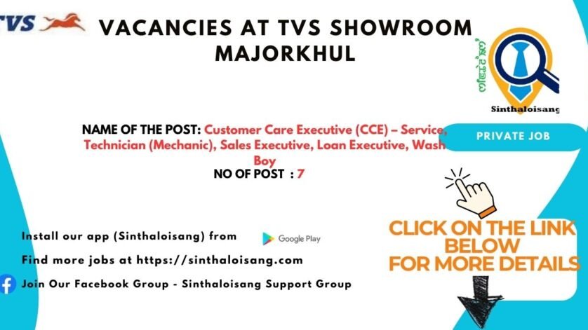 A leading TVS Showroom is inviting applications for multiple positions. If you are looking for a stable job opportunity with growth potential, apply today!
