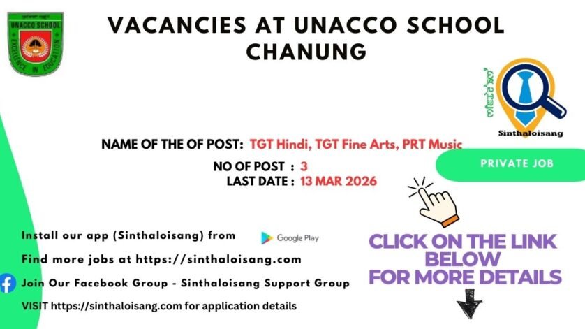 UNACCO School, Chanung, Sawombung Sub-Division, Imphal East, Manipur, invites applications from qualified and experienced candidates for the following Residential Teaching Positions.