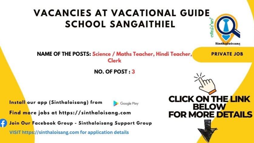 Vocational Guide School, Sangaithiel, Imphal West are invited from interested and eligible candidates for the following vacant posts: